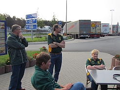 Somewhere between Frankfurt and Darmstadt, waiting for Guenter - Johan vW, Frederik, Johan deB, Corena