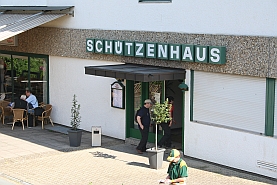 Entrance to the Schutzenhaus Restaurant (left) and shooting range (right)