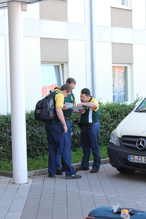 Munich Holiday Inn Express Airport Hotel ... Chris, Jacques and Gustav trying to make sense of the map of Munich |