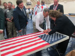 Team captains signing the USA flag ...