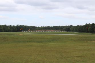 Shooting range with target numbers and a few flags downrange |