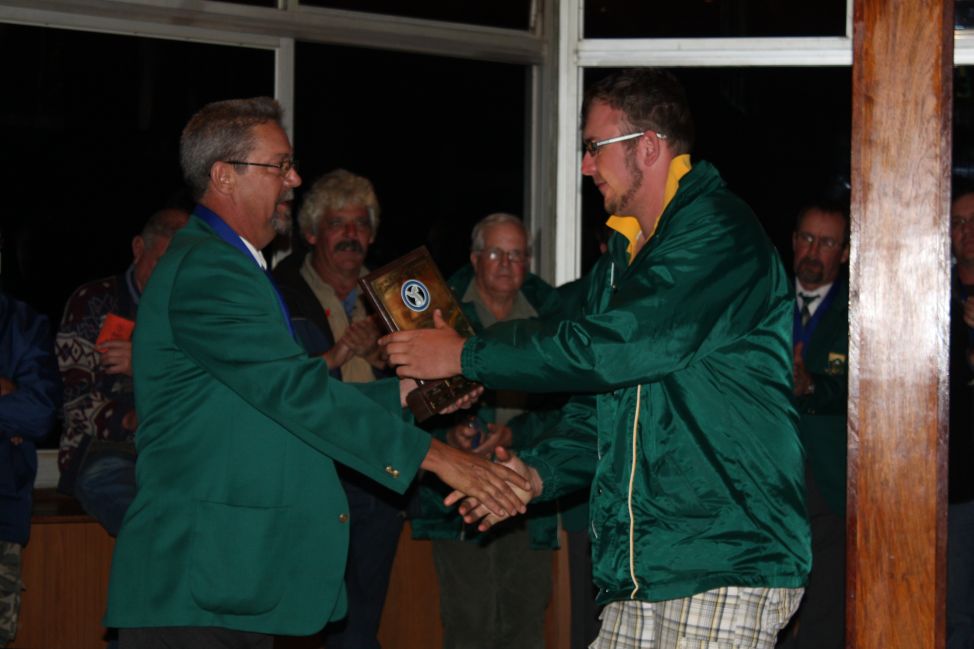 Merwe van Rensburg presenting the team trophy to Clint Slabbert, Chairman of Gauteng |